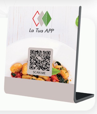E’ importantissimo dare al cliente un modo facile ed intuitivo per scaricare l’App; il QRcode è la scelta giusta! Inseriscilo e Stampalo su tutti i tuoi dispositivi (biglietti da visita, volantini, adesivi da applicare sui tavoli o sulla porta d’ingresso o regalare, menu, buste, shopper, gadget) saranno incuriositi, invogliati ad usarlo; scaricando l’app e usandola sia dentro che fuori il tuo locale.